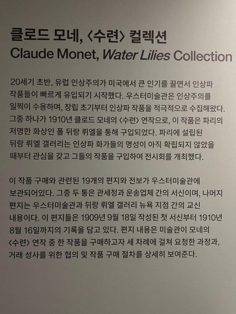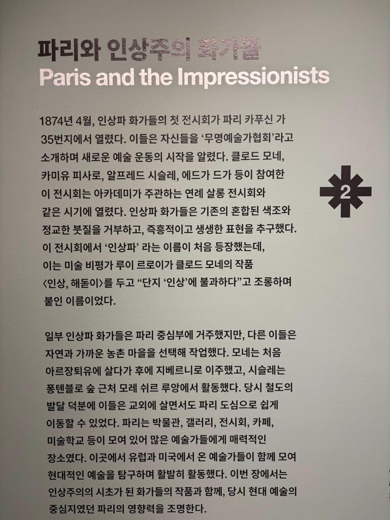 더현대 ALT1에서 2월 15일부터 5월 26일까지 열린 ‘인상파, 모네에서 미국으로’ 전시였어요.