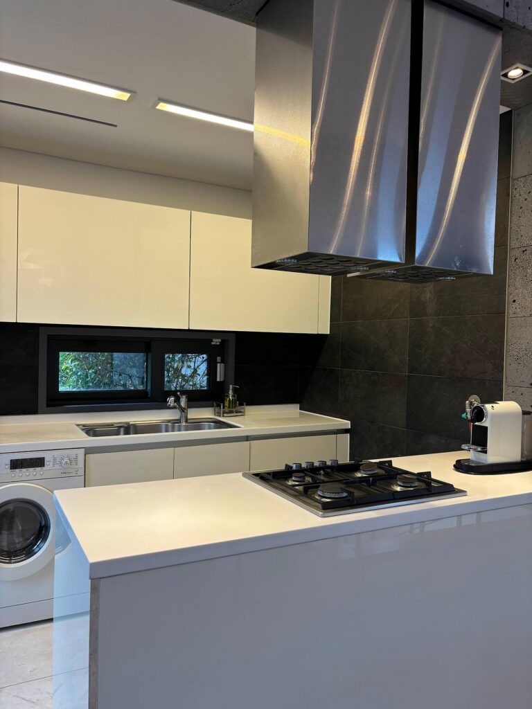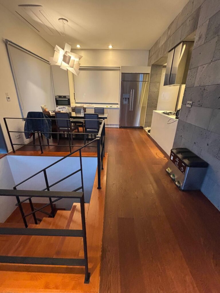 2층엔 거실과 주방이 있고, 현관을 들어가자마자 주방이 위치하고 있어요.