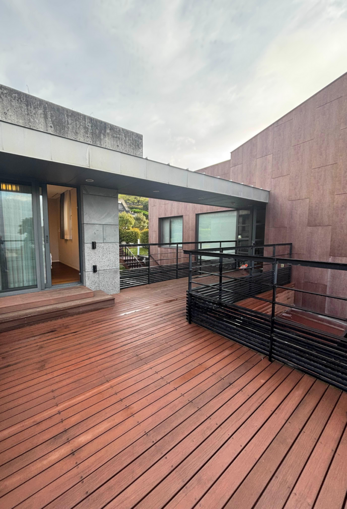 1층 데크와도 연결되어 있고, 현관도 보이네요.