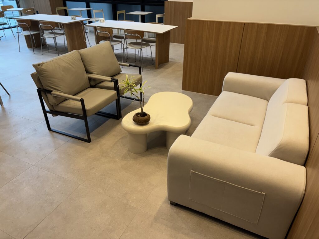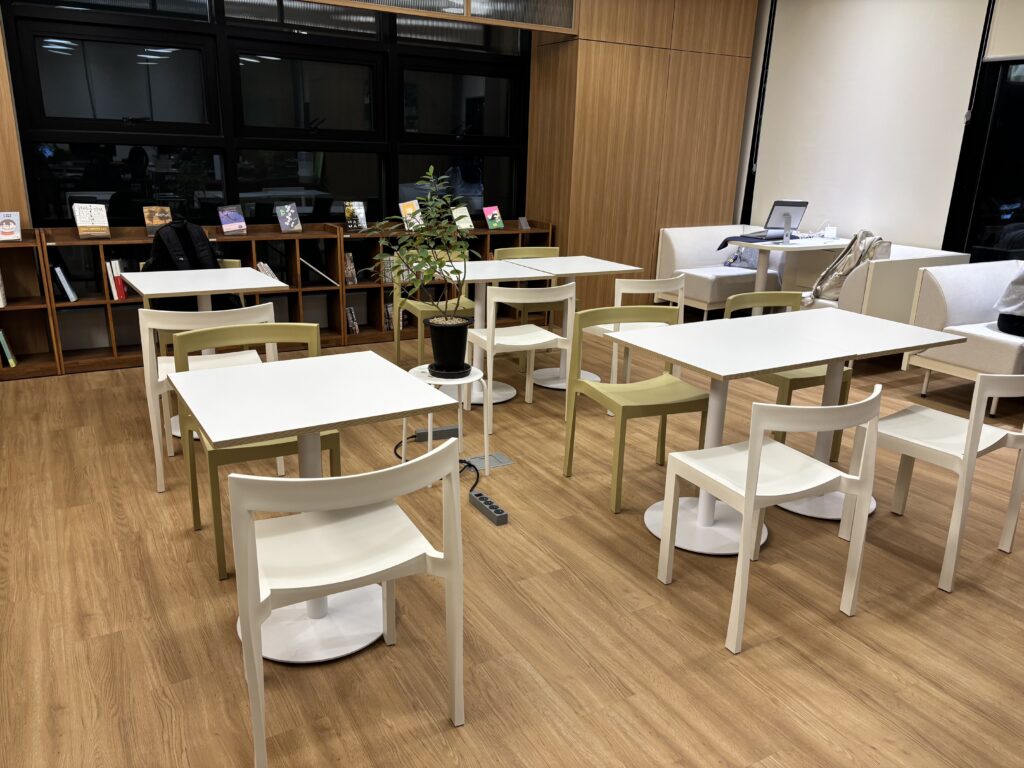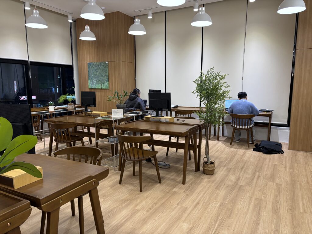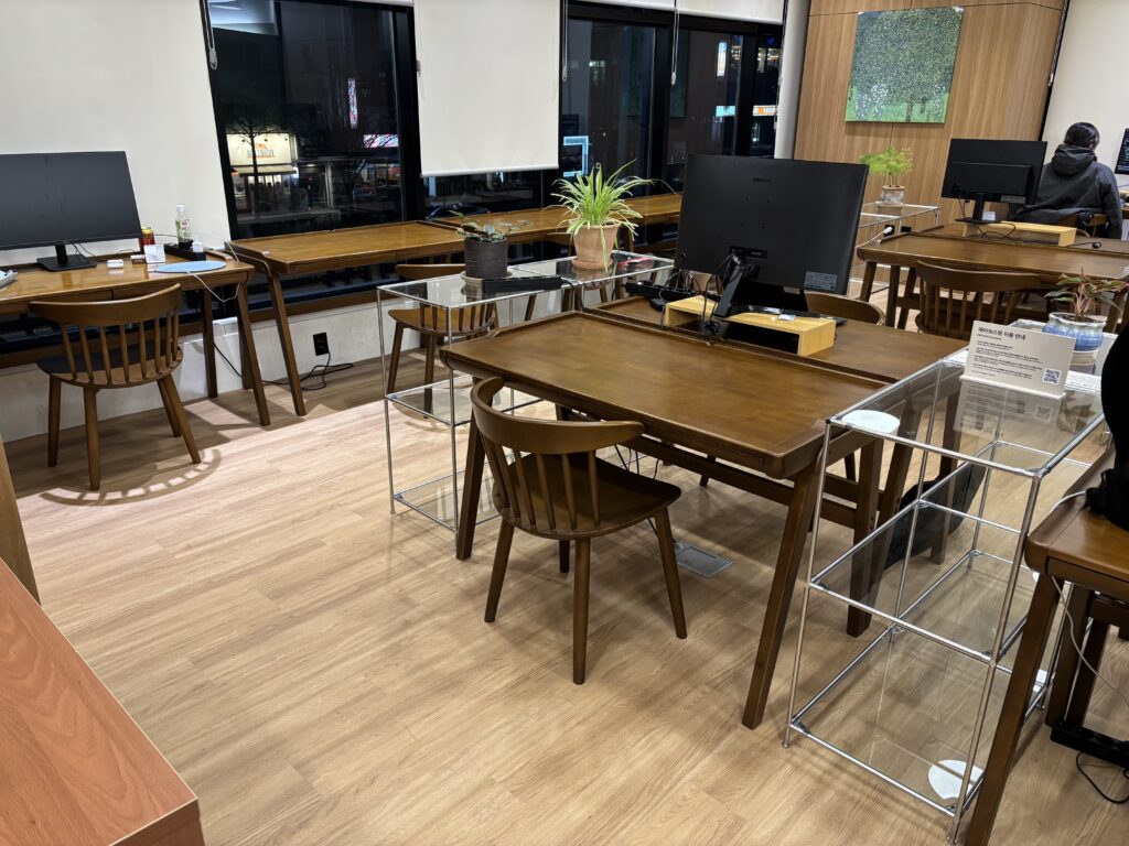소파 좌측에는 2명씩 앉을 수 있는 테이블 좌석이 있는데, 오붓하게 단 둘이 작업하기 좋아보였습니다.